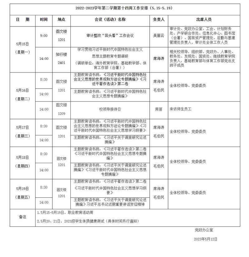 第十四周工作安排(5.15-5.19)