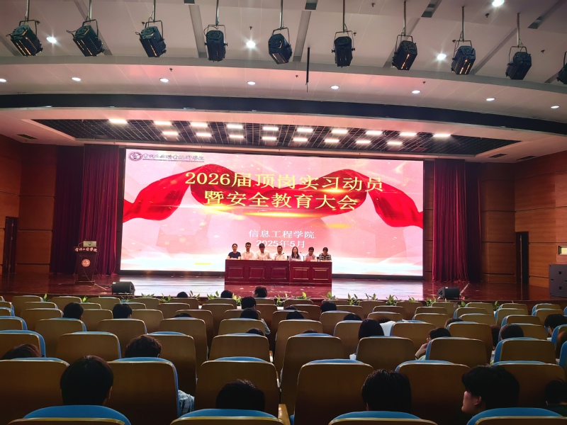 为扎实推进2026届学生顶岗实习工作,强化实习安全意识,提升学生就业竞争力,6月12日,信息工程学院召开2026届学生顶岗实习动员暨安全教育大会。学院领导班子成员、实习指导教师、全体辅导员及2026届全体学生参加会议。 大会开始,学院副院长王新作顶岗实习动员讲话。她强调,顶岗实习是人才培养的重要环节,是理论与实践结合的桥梁,希望同学们珍惜机会,端正态度,在实践中提升专业技能和职业素养。同时,她要求同学们严格遵守实习纪律,展现信息工程学院学子的良好风貌。学院产学研副院长武栋就顶岗实习的具体要求进行详细说明,包括实习任务安排、考核标准、毕业设计流程及时间节点等,提醒学生提前规划,确保高质量完成实习和毕业设计任务。学院教学副院长陆海澎针对2026届毕业资格条件进行专项解读,重点讲解了学分要求、证书获取及成绩评定等关键事项,帮助学生明确目标,避免因政策不清而影响毕业进度。学院党总支副书记赵云结合真实案例,开展顶岗实习安全专题教育。他剖析了求职诈骗、传销陷阱、合同纠纷等常见就业风险,提醒学生增强防范意识,保护人身财产安全,并强调实习期间务必与学院保持密切联系,遇到问题应及时反馈。 学院党总支副书记袁凯烽作总结讲话。他再次强调顶岗实习的重要意义,鼓励学生以积极的心态迎接挑战,在实践中锤炼本领。同时要求全体教师做好指导与服务,为学生顶岗实习保驾护航。 本次大会的召开,标志着信息工程学院2026届顶岗实习工作全面启动。通过政策宣讲、安全教育与动员部署,学生们进一步明确了实习目标与要求,为顺利完成实习任务奠定了坚实基础。学院将持续关注学生顶岗实习动态,确保顶岗实习工作安全、有序、高效开展。