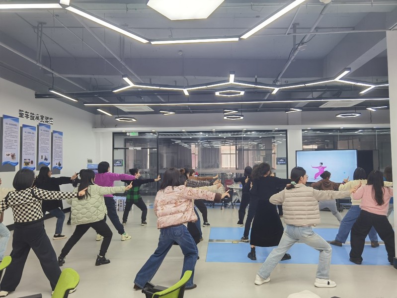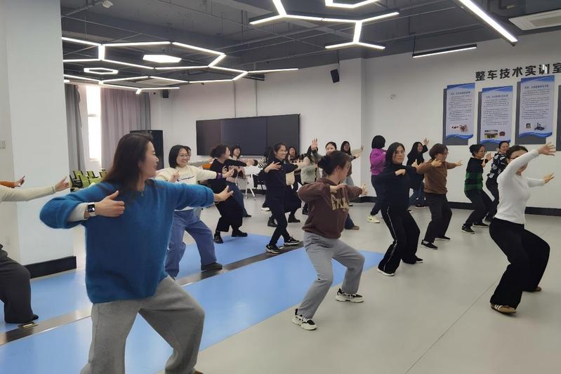 春和景明,暖意盎然。为庆祝三八国际妇女节,切实关爱女教职工身心健康,积极倡导“健康生活、快乐工作”的生活方式,3月11日,信息工程学院分工会在一楼百度基地顺利开展八段锦健身活动,全体女教职工热情参与、积极投入,在柔缓舒展的功法练习中,共度一个温馨而有意义的节日。 八段锦作为流传千年的中华传统导引术,动作简易、安全便捷,兼具调理身心与传承文化的双重价值,其核心是通过“调身、调息、调心”的协同锻炼,实现疏经通络、调和脏腑的养生效果,十分契合久坐办公的教职工群体需求。为确保活动效果,学院分工会精心筹备,特邀旅游与康养学院朱文君老师亲临现场指导教学。 活动现场,朱文君老师结合养生理念,从“两手托天理三焦”到“背后七颠百病消”,逐式拆解八段锦的动作要领,细致讲解每一个动作对应的功效,重点纠正老师们在站姿、呼吸、发力上的姿态偏差,让大家不仅学会动作,更能深入理解八段锦“形神合一”的养生精髓。为推动健康锻炼融入日常,学院分工会还提前为老师们发放了八段锦学习视频,方便大家在活动之余居家练习、持续受益。 伴随着舒缓的音乐,老师们缓缓起势,抬手、转体、沉气、伸腰,动作舒展柔和、神情专注认真,一招一式间尽显巾帼风采。大家屏气凝神,在一呼一吸间释放日常工作的疲惫,在刚柔并济中调养身心,现场氛围温馨而热烈,阵阵欢声笑语与轻柔的音乐交织,充分展现了女教职工积极向上、热爱生活的精神风貌。老师们纷纷表示,此次八段锦健身活动既缓解了长期伏案工作带来的身体劳损,又学习了实用的养生技巧,更在轻松愉悦的氛围中感受到了学院的关怀。 活动最后,学院分工会为参与活动的女教职工送上了丰富奖品,在欢声笑语中传递节日的美好祝福。此次活动不仅丰富了女教职工的精神文化生活,普及了养生知识,更进一步增强了学院大家庭的凝聚力与归属感,切实将关爱落到实处,让每一位女教职工都能感受到节日的温暖与集体的关怀,以更昂扬的姿态绽放巾帼芳华、贡献巾帼力量。